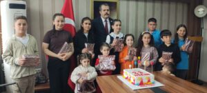 Kaymakamlıkta düzenlenen temsili devir programı sonrası ayrıca İlçe Kaymakamı Özgür Kaya’nın katılımıyla 23 Nisan doğumlu çocuklarla birlikte doğum günü pastası kesildi ve çocuklara çeşitli hediyeler verildi.