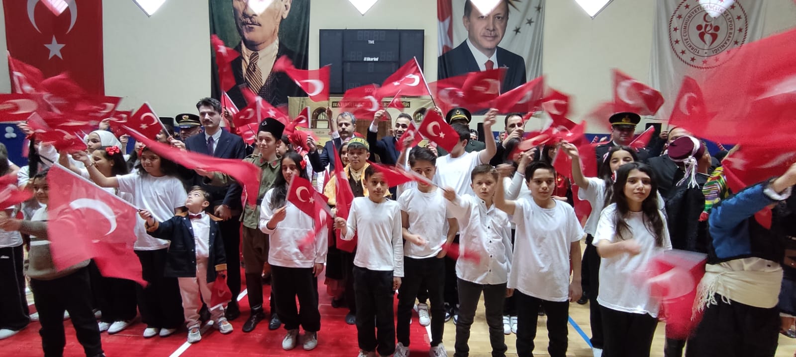 TBMM’nin 106. Kuruluş yıl dönümünü  ve 23 Nisan Bayramını öğrenciler, yapılan etkinliklerle doya doya yaşadılar. İlk tören;  İlçe Milli Eğitim Müdürü Resul Özata’nın Cumhuriyet Meydanı’nda Atatürk Anıtı’na Çelenk sunmasıyla başladı. Bayram kutlamaları, Köprülü Mehmet Paşa Kapalı Spor Salonu’nda yapılan program ile devam etti.