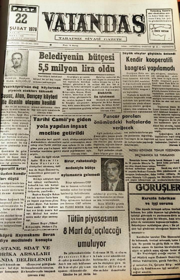 “VATANDAŞ” Gözünden 50 Yıl Önce Vezirköprü 22 Şubat 1976 Pazar