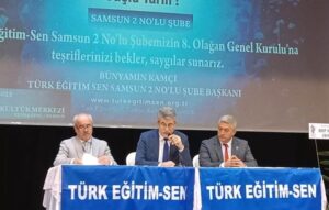 Türk Eğitim Sen Samsun 2 No’lu Şubesi 8. Olağan Genel Kurulu’nda konuşan Türk Eğitim Sen Samsun 2 Nolu Şube Başkanı Bünyamin Kamçi: