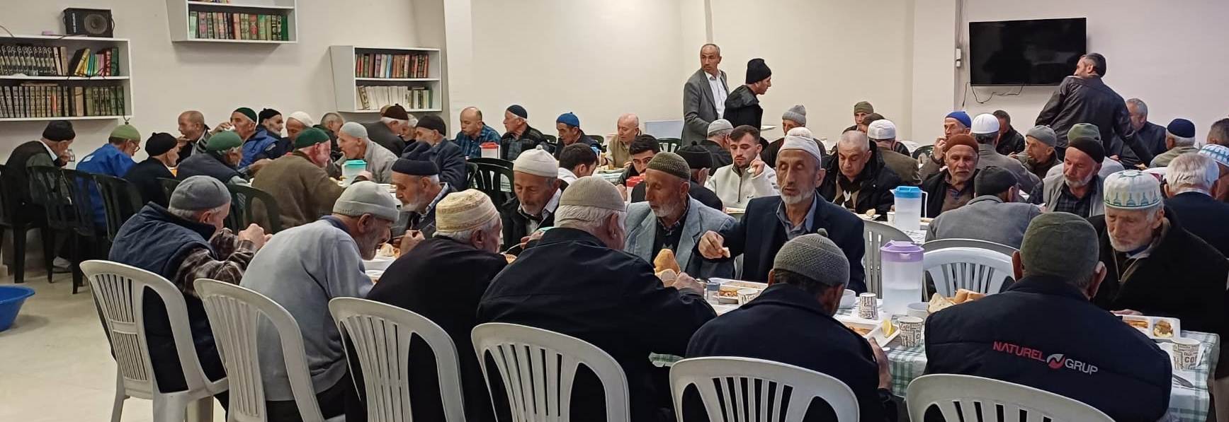 Köy Camisinin sosyal tesislerinde hazırlanan iftar yemekleri, ezanla birlikte açılan oruçların ardından hep birlikte edilen dualarla taçlanıyor.