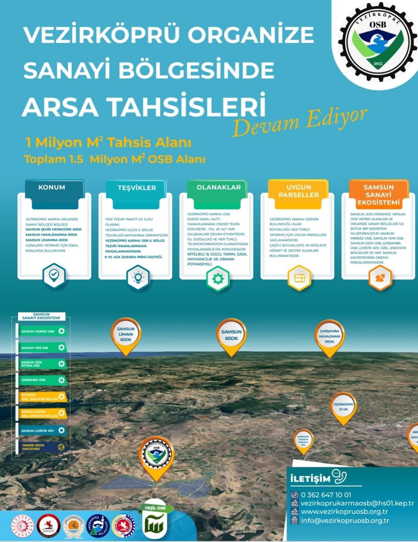 Valilik açıklamasında, “Kuzeyin Üretim Merkezi Samsun’umuzda yatırım ve istihdamın yeni rotalarından Samsun Vezirköprü Karma Organize Sanayi Bölgesi’nde yatırım yapmak isteyen sanayicilerimiz arsa tahsis başvurularını 22.03.2026 tarihine kadar http://meydip.sanayi.gov.tr adresinden yapabilecektir” denildi.