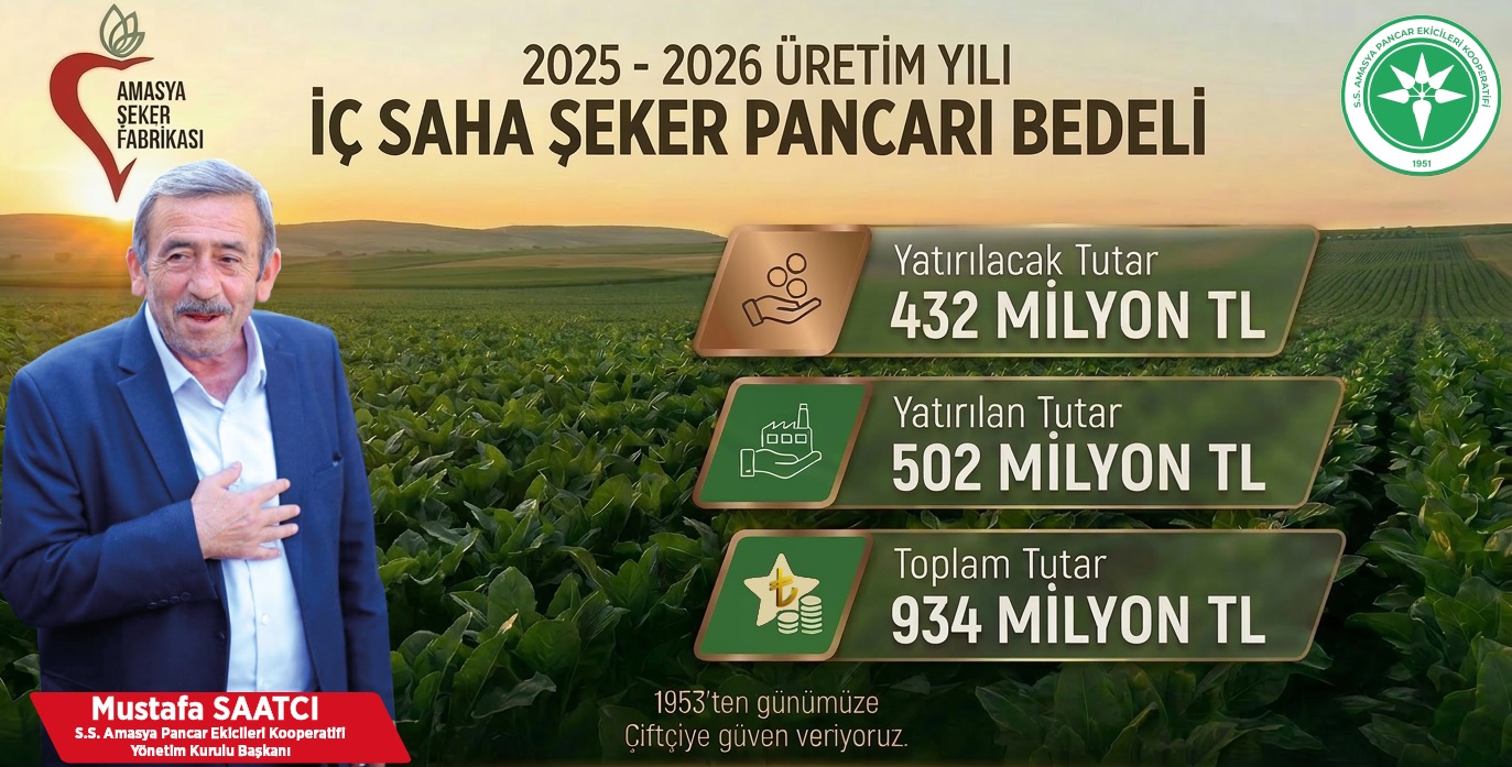Amasya Pancar Ekicileri Kooperatif Başkanı Mustafa Saatcı tarafından yapılan açıklamada, şeker pancarı üreticilerine yönelik pancar bedellerinin ödenmesiyle birlikte çiftçilerin finansal açıdan rahatlayacağı belirtildi.