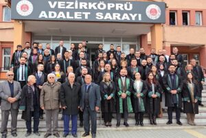 Vezirköprü Adliyesi 1.Asliye Ceza Mahkemesi’nde görülen duruşma sonrası sözlü ve fiziki saldırıya uğrayan avukat için bir araya gelen meslektaşları Samsun Baro Başkanlığı öncülüğünde adliye binası önünde basın açıklaması düzenleyerek saldırıyı kınadılar.