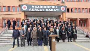 Vezirköprü Adliyesi 1.Asliye Ceza Mahkemesi’nde görülen duruşma sonrası sözlü ve fiziki saldırıya uğrayan avukat için bir araya gelen meslektaşları Samsun Baro Başkanlığı öncülüğünde adliye binası önünde basın açıklaması düzenleyerek saldırıyı kınadılar.
