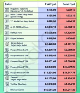 2026 yılı için trafik cezalarındaki değişiklikler de belirlenirken, nüfus cüzdanı, ehliyet, pasaport gibi evrakın da yen fiyatları açıklandı.